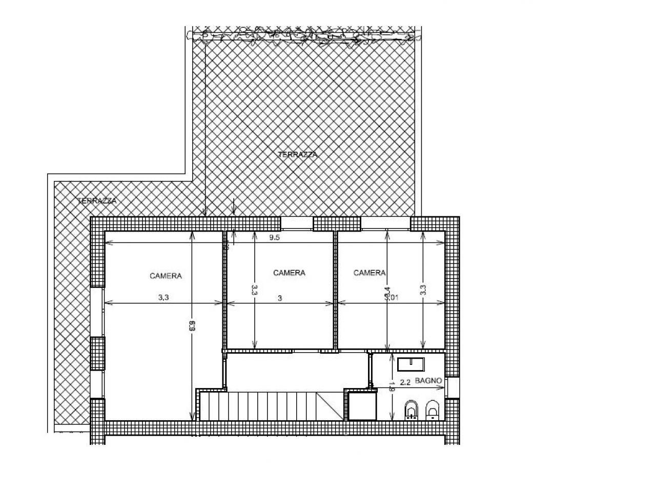 Al PIANO PRIMO si sviluppa la zona notte, composta da tre camere da letto, bagno principale, balcone perimetrale e un AMPIO TERRAZZO, perfetto per momenti di relax all’aperto.
