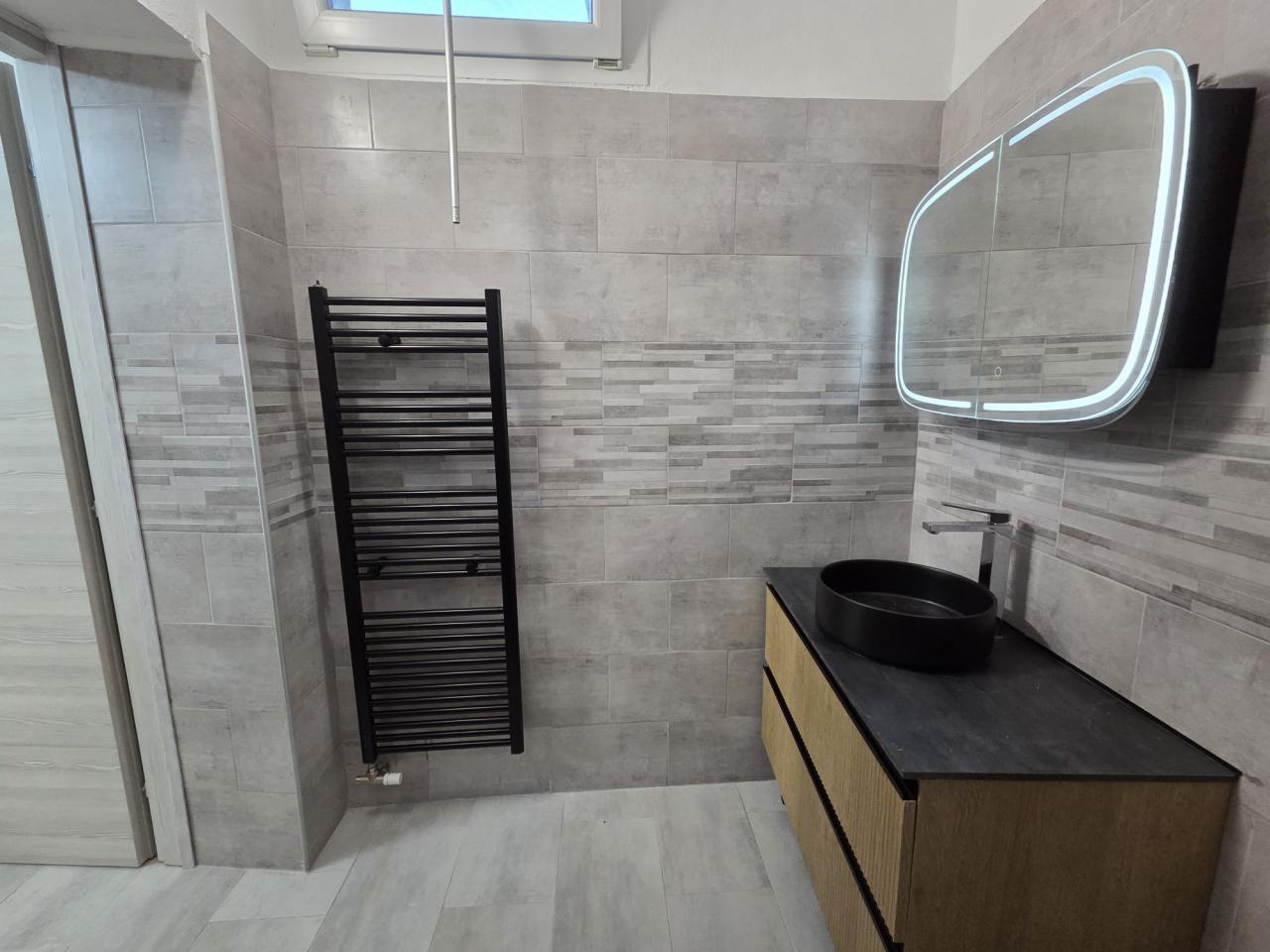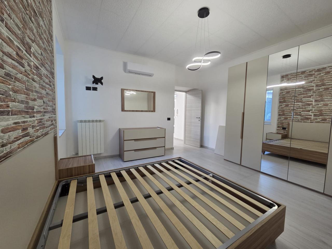 La camera da letto matrimoniale, intima e silenziosa, sarà il tuo rifugio dopo lunghe giornate, mentre il pratico bagno con doccia e angolo lavanderia completa l’appartamento con funzionalità.