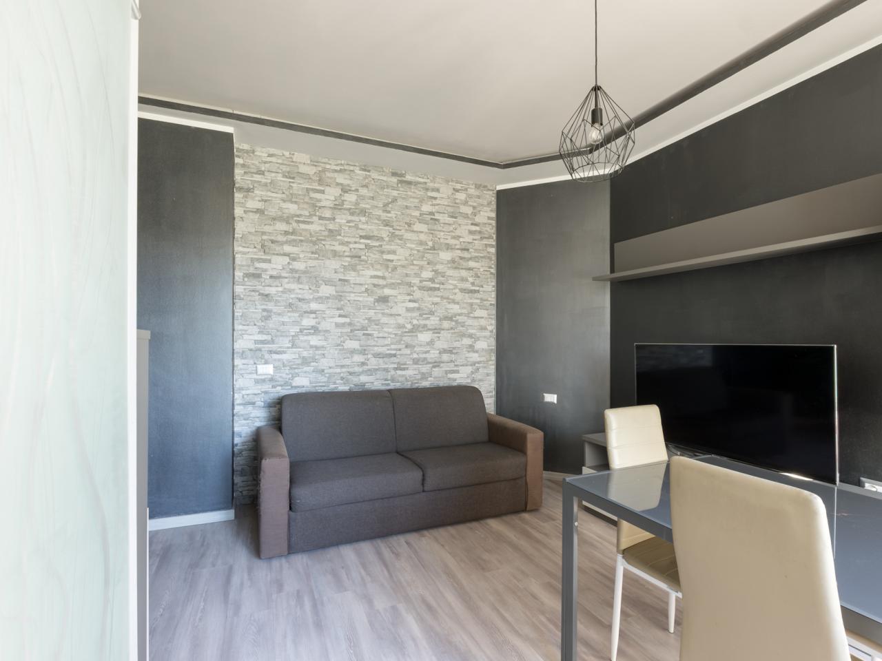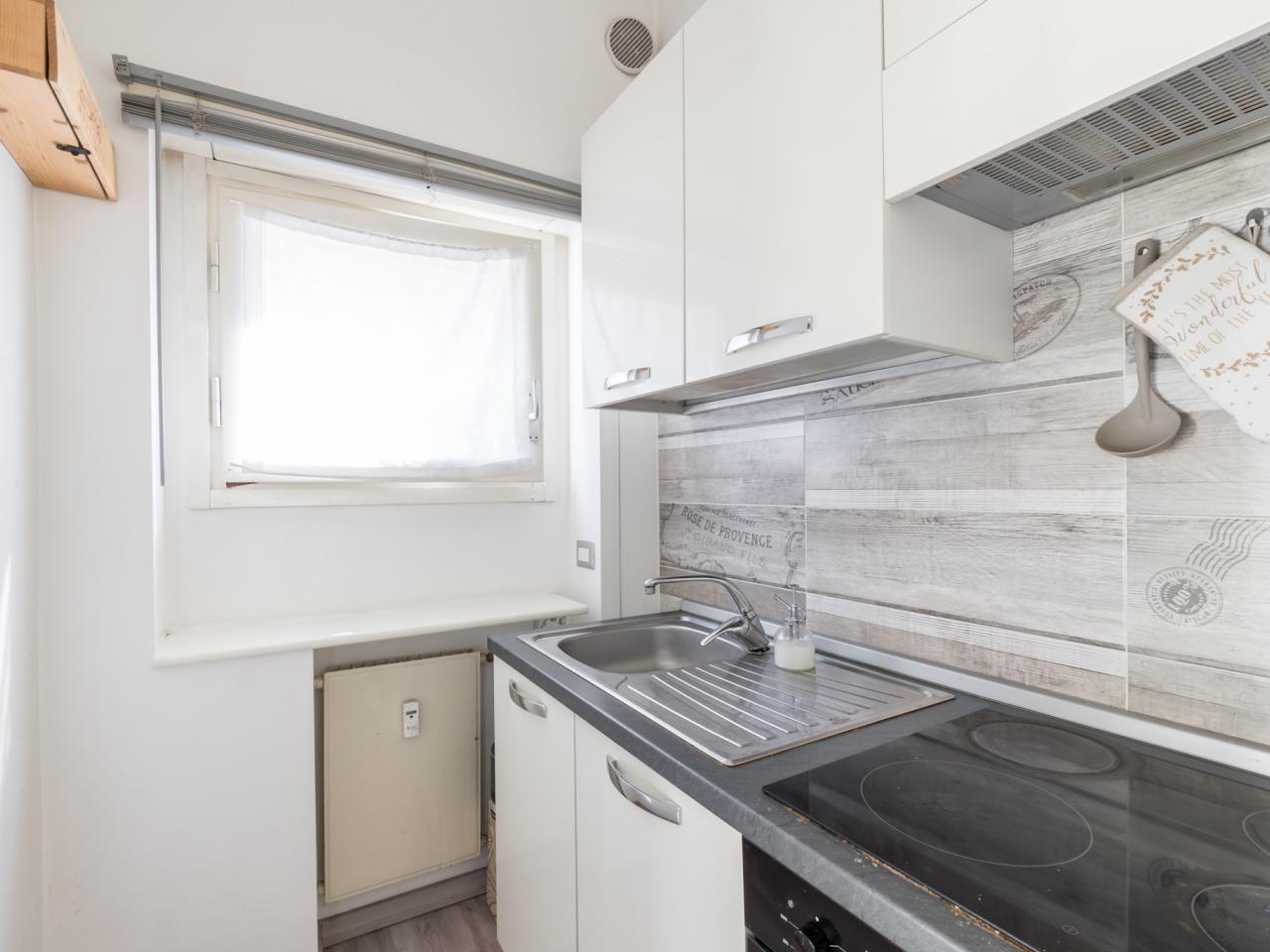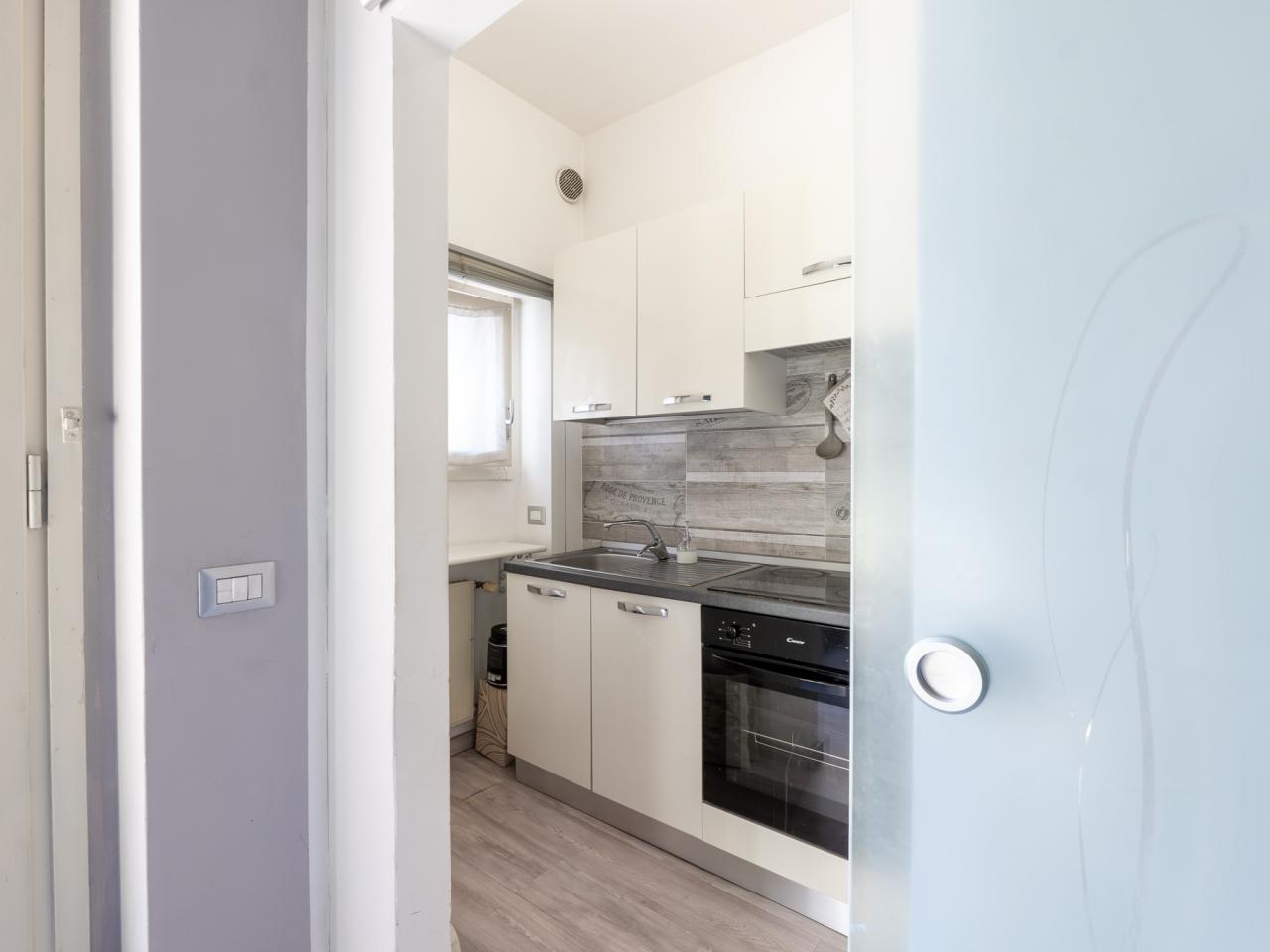 L’appartamento si sviluppa in modo funzionale e razionale: l’ingresso conduce all’ambiente principale adibito a soggiorno e zona notte, affiancato da un pratico angolo cottura.